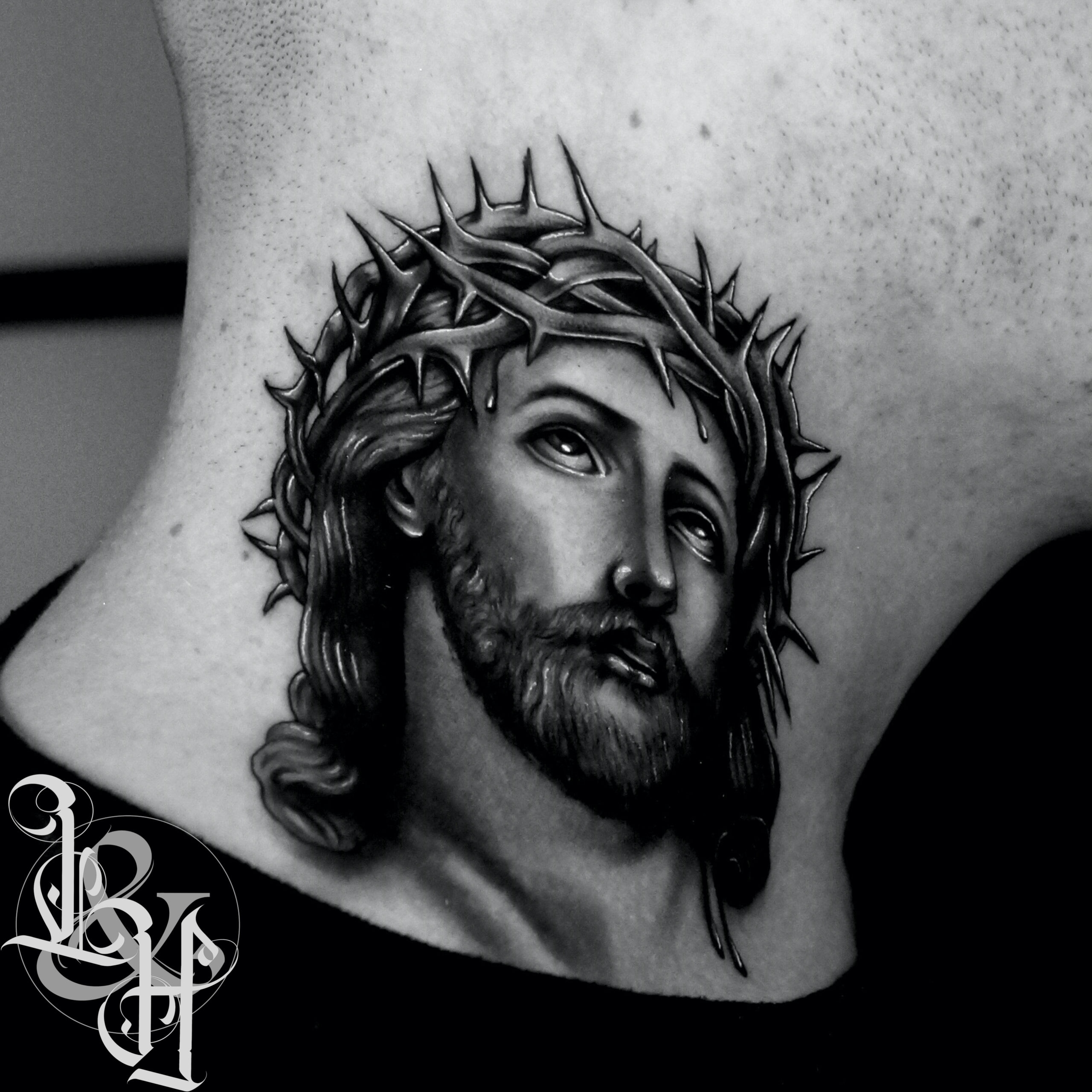 She’s the first person i know who has done it. The tattoo is black and white with a lot of detail. Find this pin and more on neck tattoos by matt spraggins.... If not, then the entire look of jesus christ will be ruined, losing its purpose.